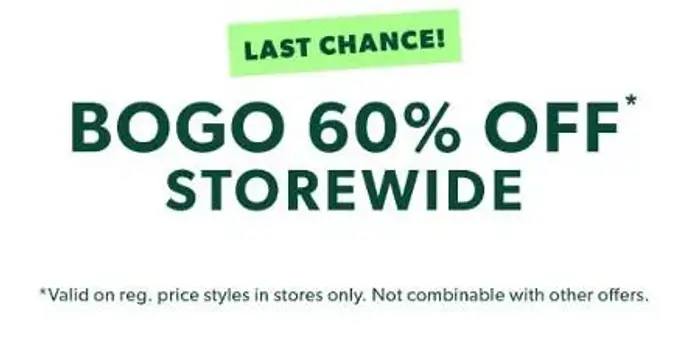 Last chance! Shop in store and enjoy buy one, get one 60% off everything.