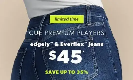 Limited time! Shop in store and get the edgely™ & Everflex™ jeans for $45.